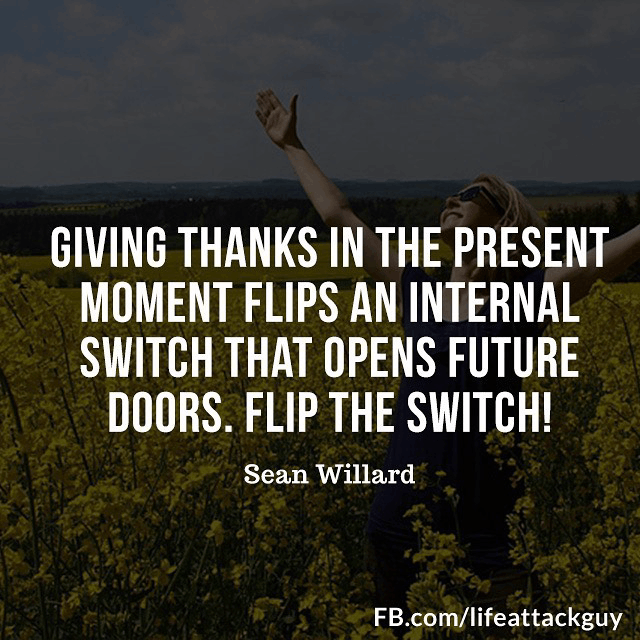 Giving thank in the present moment flips an internal switch that opens future doors. Flip the switch!