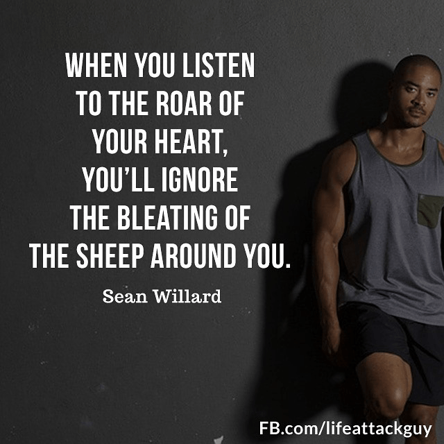 When you listen to the roar of your heart, you'll ignore the bleating of the sheep around you.